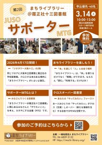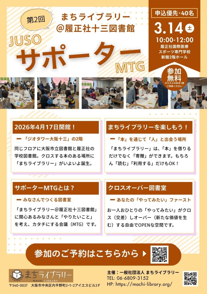 まちライブラリー@履正社十三図書館『第2回サポーターMTG』開催のお知らせです。