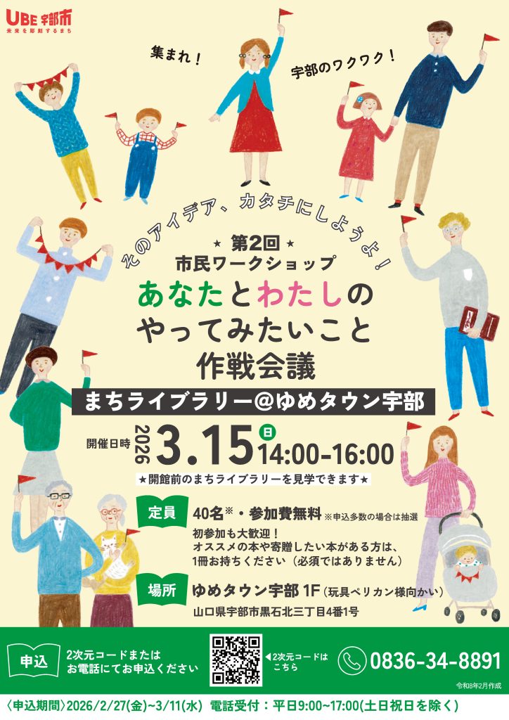 まちライブラリー@ゆめタウン宇部 第2回市民ワークショップ「あなたとわたしのやってみたいこと作戦会議」参加者大募集!