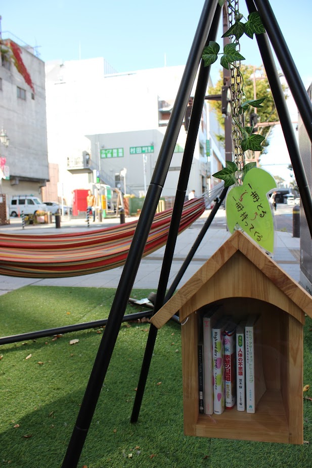 いわき駅前のたいらほこみちにある、巣箱型のリトルフリーライブラリーです。
