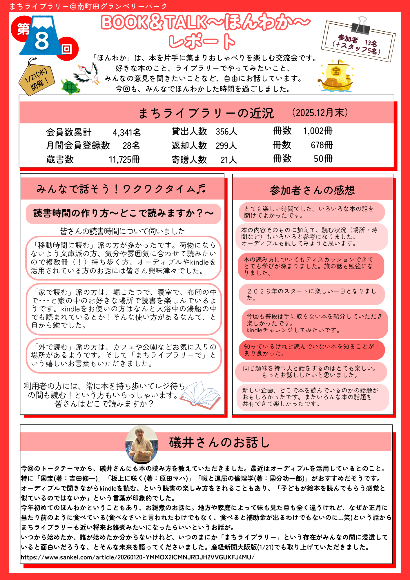 サポーター会議の名称を『BOOK&TALK~ほんわか~』に改めました!