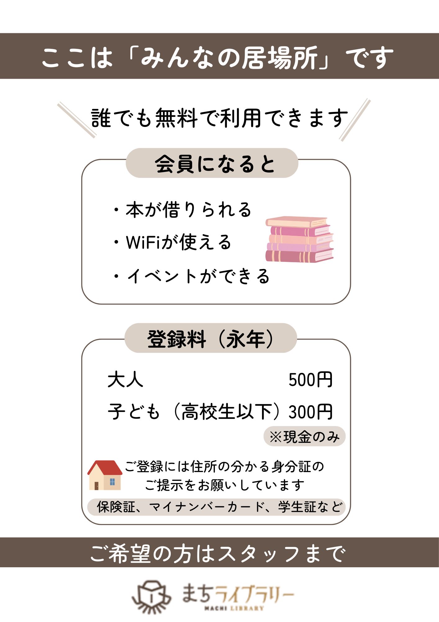 取扱い日時はまちライブラリー開館時間と同じです。