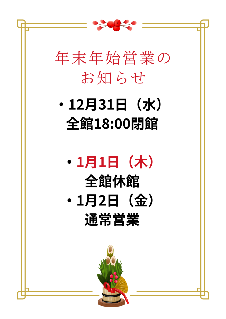 【年末年始営業のお知らせ】