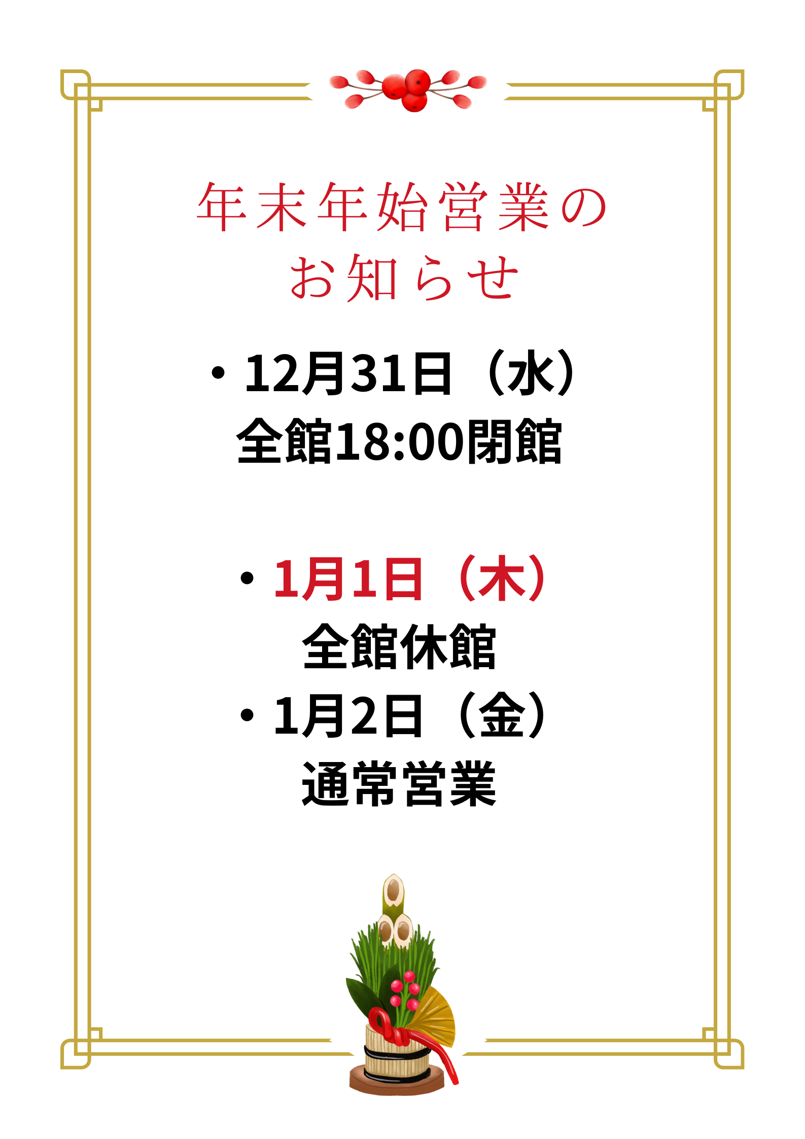 【年末年始営業のお知らせ】